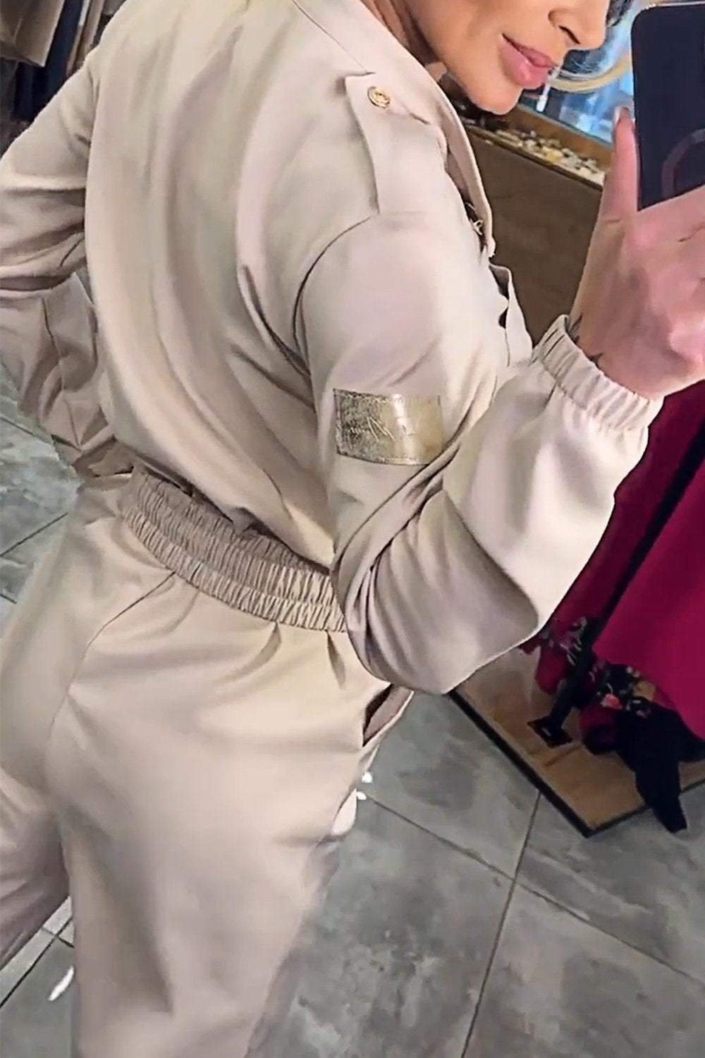 Waist-controlled Long Sleeves Casual Shirt Jumpsuit For Women